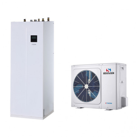 Sinclair MSH-190TB/3 + MSH-60EB je komplexné splitové tepelné čerpadlo vzduch-voda s ekologickým chladivom R32, ktoré okrem vykurovania a chladenia obsahuje aj integrovaný zásobník teplej úžitkovej vody (TÚV). Ide o vysoko efektívne riešenie pre rodinné domy a objekty s vyššou tepelnou stratou, ktoré požadujú komfortné a úsporné teplo aj teplú vodu z jedného systému.
